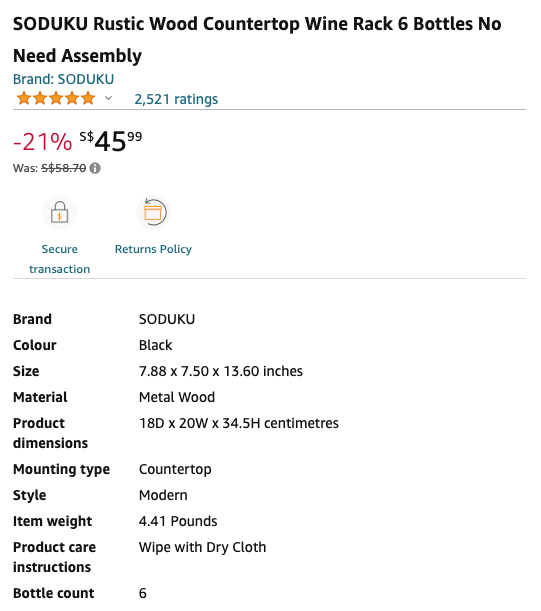 For the shopper on Amazon, product specifications and measurements make all the difference when it comes to making a purchase. Having this kind of detailed information gives the customer greater confidence in what they're buying, and makes them feel much better about their decision.