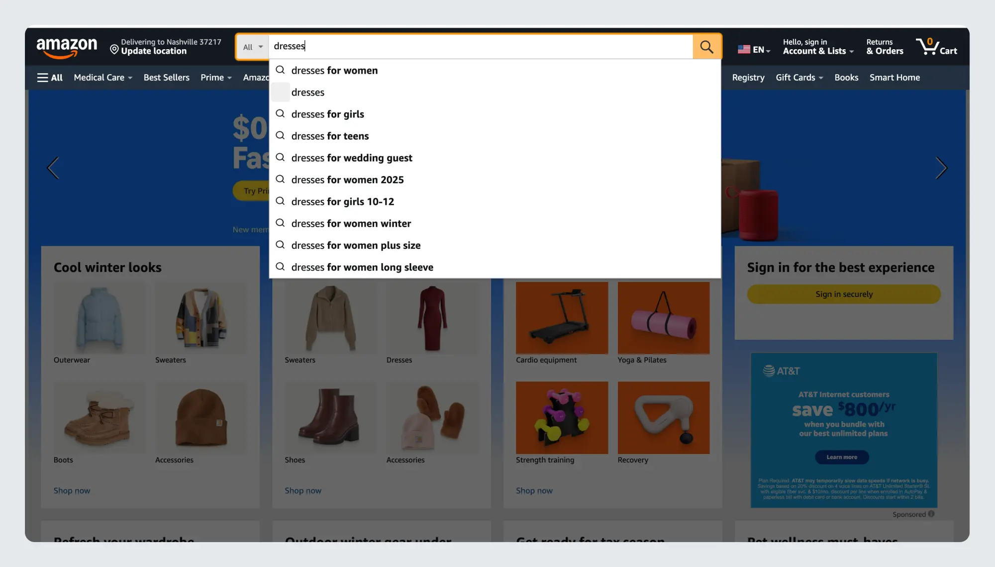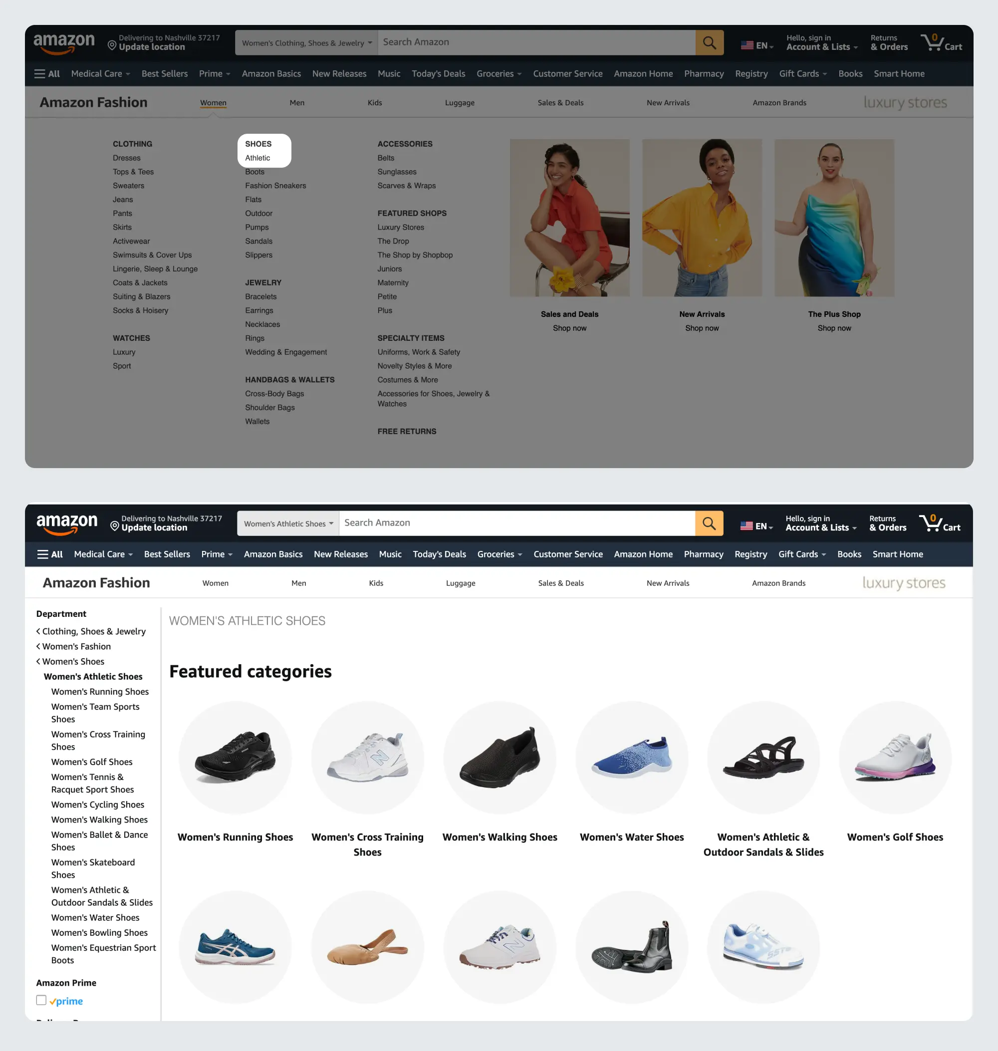 For example, if you’re a women’s fashion retailer, go to Clothing, Shoes, Jewelry & Watches, select women, then hover over “Women” in the top navigation bar.