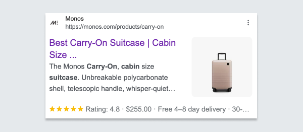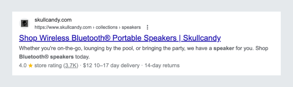 For ecommerce product pages, include the product name, top features, pricing details or promotions like "free shipping." This gives searchers a taste of what they’ll see on the other end of the click.