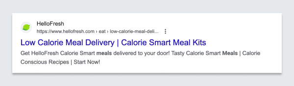 This is what I was talking about. HelloFresh targets diet-watchers and highlights that in their main title.