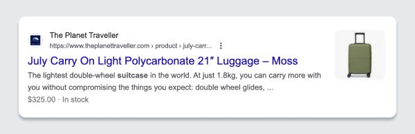 Include the most important content in the front part of your description to ensure it stays visible—just like this example. The meta description got truncated, but the main point remains clear. It’s the lightest double-wheel suitcase.