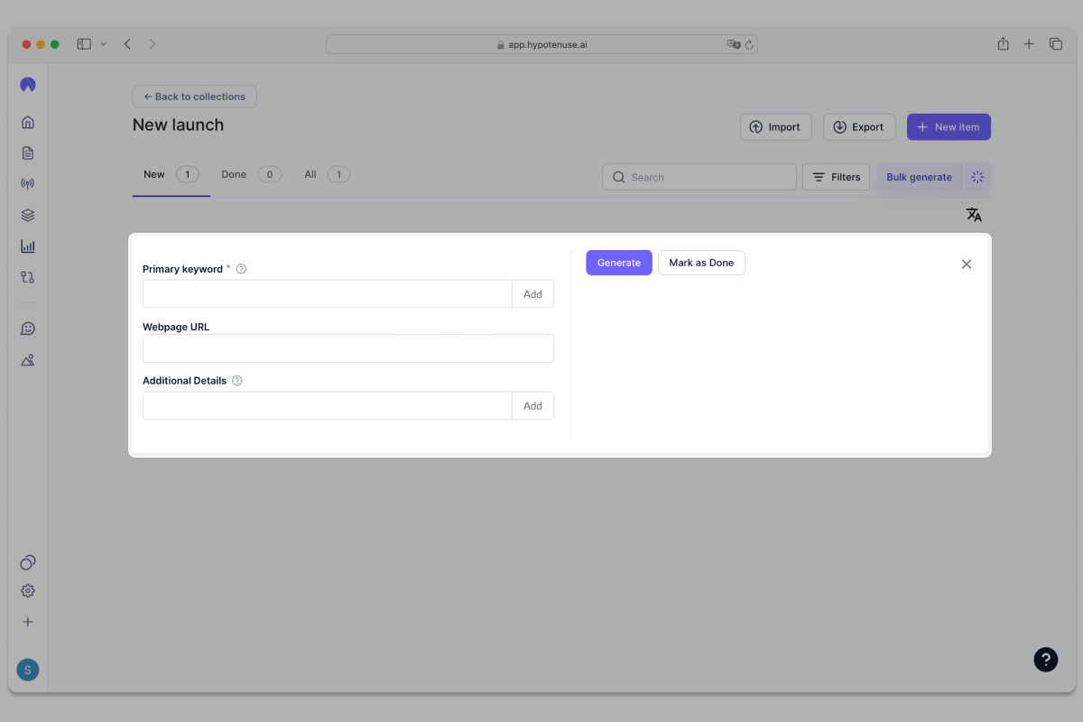 You'll only need to enter your primary keyword and additional details about the page or product.