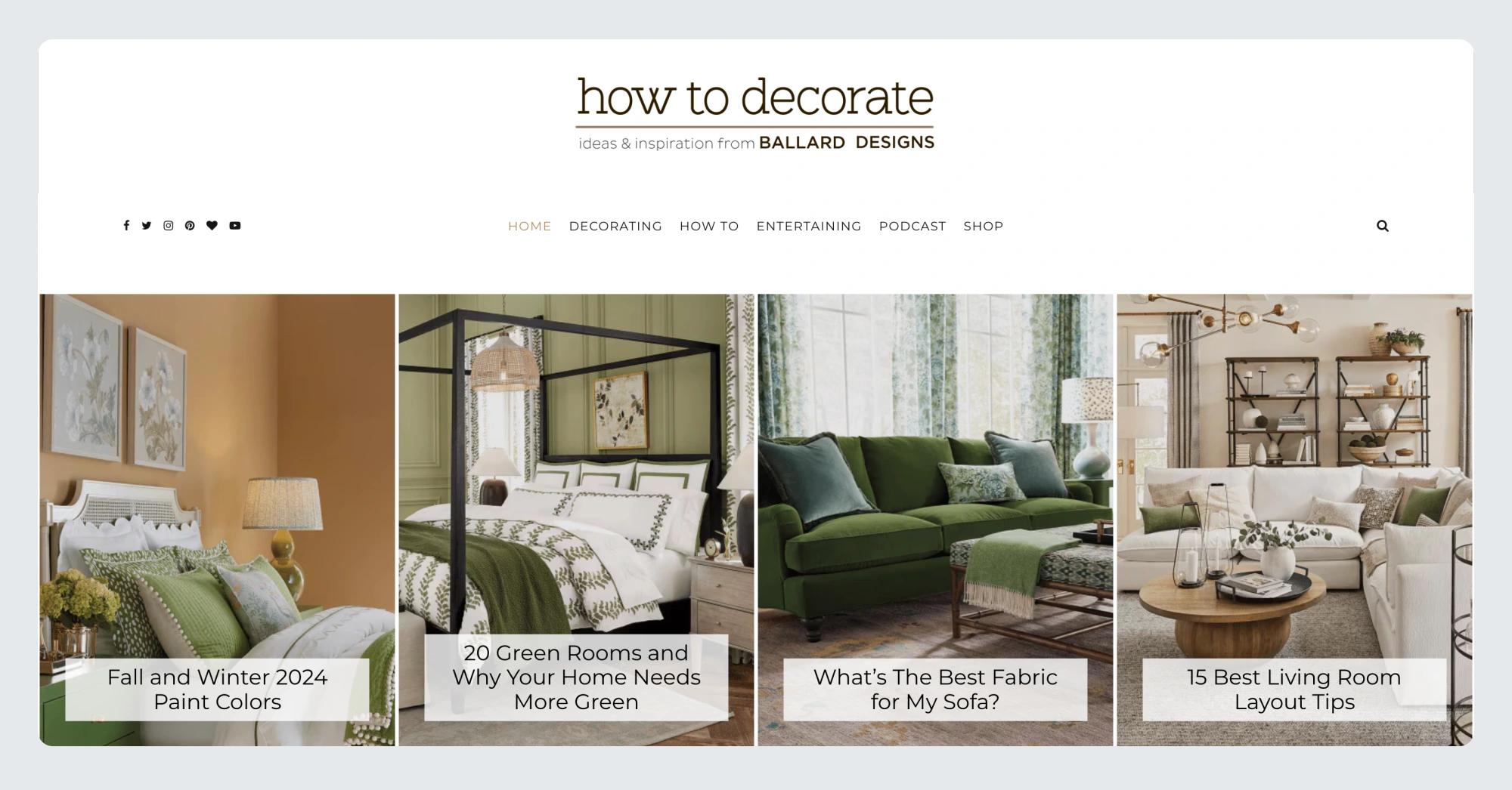 Expand your website's value by creating blog articles or guides on these. This content can help you rank for a wider range of keywords and position your store as an authority in the field. Ballard Designs creates valuable pieces of content around home decor ideas, product care, and furniture for very specific use cases.
